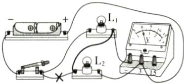(3)接下来小明要用电压表测 $ L_2 $ 两端的电压,连接实物图如图丙所示,图中只有一根导线连错了,请你在连错的导线上画“×”,并用笔画线代替导线将电路连接正确。