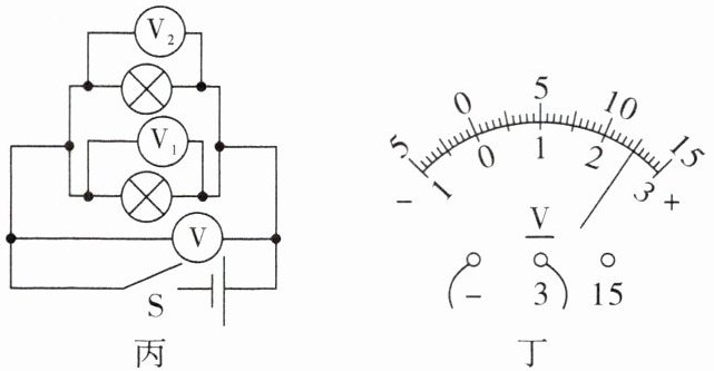 (指出一种即可)。(3)接下来,他们按如图丙所示的电路图连接了三个电压表。实验过程中,某次电压表 $ V_1 $ 的示数如图丁所示,则电压表 $ V_1 $ 的分度值是