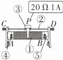 、④接线柱、⑤绝缘管。(2)铭牌:“20 Ω”表示滑动变阻器的