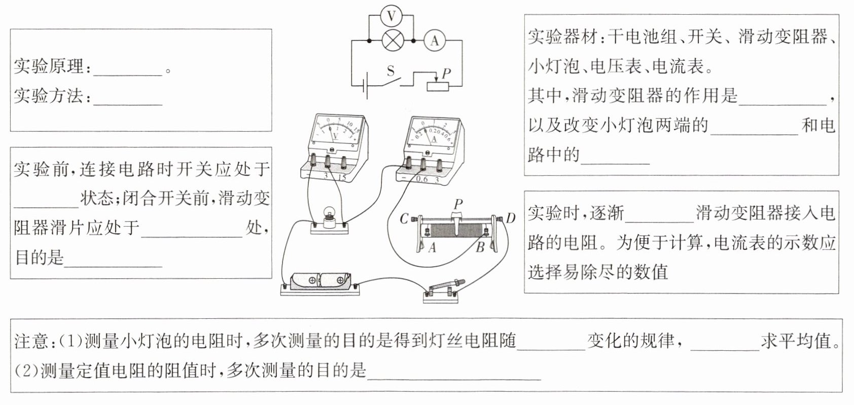 (1) 测量小灯泡的电阻时,多次测量的目的是得到灯丝电阻随温度变化的规律,不是求平均值。