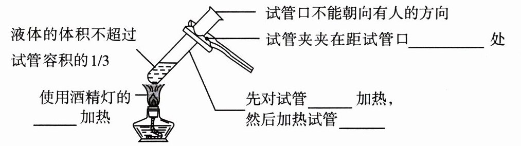 注意:加热液体时,若液体体积较大,应选烧杯加热,且还需铁架台、酒精灯和陶土网。