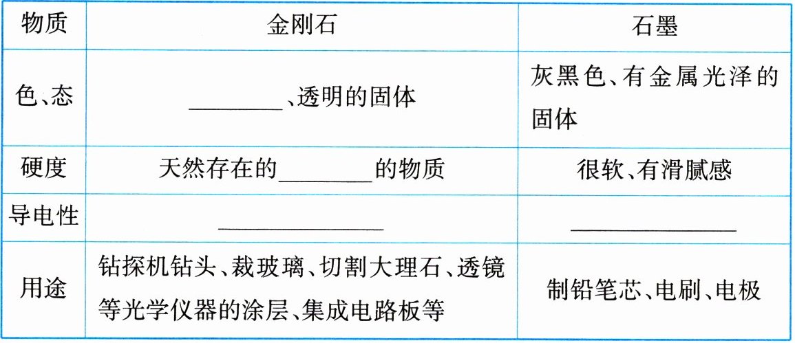 一、金刚石和石墨的物理性质及用途