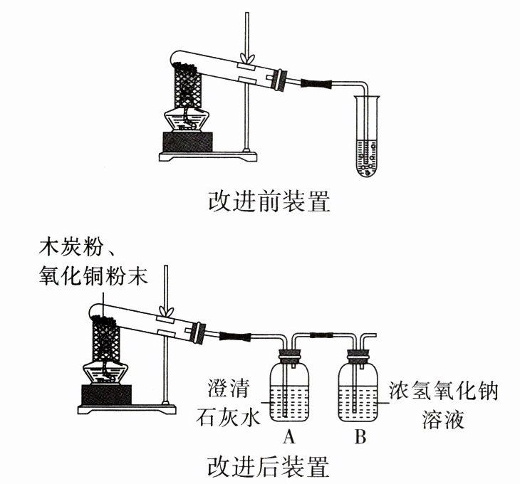 实现碳中和人人有责。为了减少CO2的排放,同学们改进了木炭还原氧化铜的实验装置,改进前和改进后装置如图所示。请推测装置B的作用是