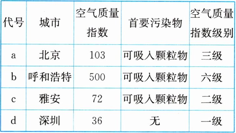 。(2)下表是某日我国部分地区的空气质量指数日报内容: