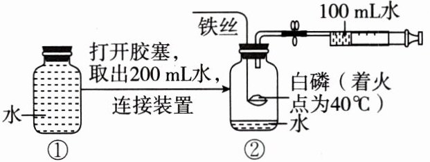 C. 白磷的作用是消耗②中瓶内的$O_2$