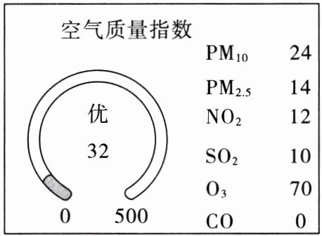 7. (教材资料卡片改编)“经历作业”是某校的特色之一,它让学生的素养得以培养。如图是小杰同学的国庆化学“经历作业”:记录某地10月2日空气质量指数日报中的各个内容的数值。下列说法正确的是 (