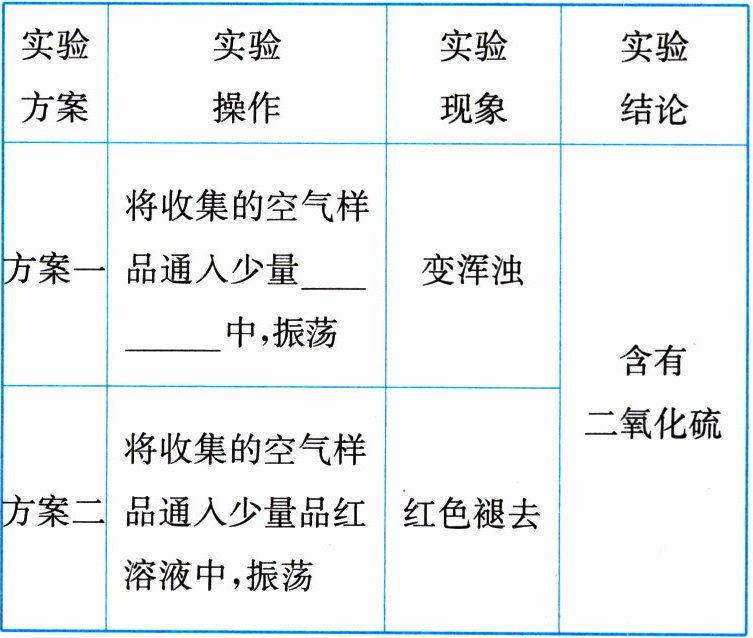[进行实验]设计实验方案,探究工厂附近空气中是否含有二氧化硫。