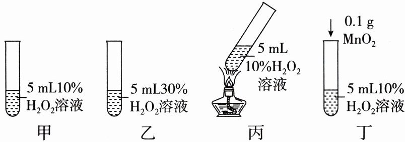 D.对比实验甲、丙和丁,探究$MnO_2$和温度对$H_2O_2$分解速率影响的程度