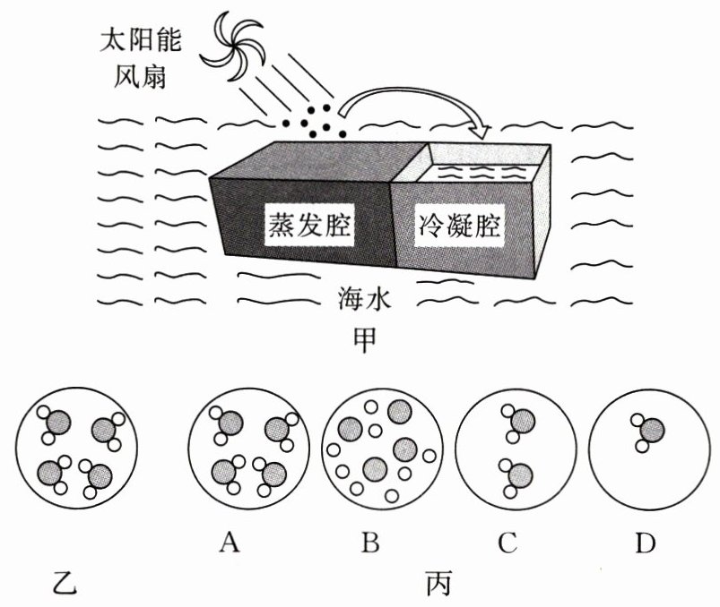 8. 某海水淡化系统(如图甲)在工作时,蒸发腔中的水在光热作用下变为水蒸气,太阳能风扇将水蒸气吹到冷凝腔冷凝,实现海水淡化。