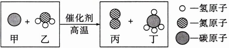 (2)科学家最新发现,通过简单的化学反应,可以让树木纤维素和氨气反应,生成甲烷$(CH_4)$和氮气。如图是该反应的微观示意图,据图回答下列问题。