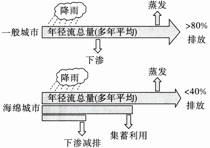 5. (学科素养·科学态度与责任)建设“海绵城市”可以更好地利用水资源。如图所示为一般城市与海绵城市雨水排放对比示意图。