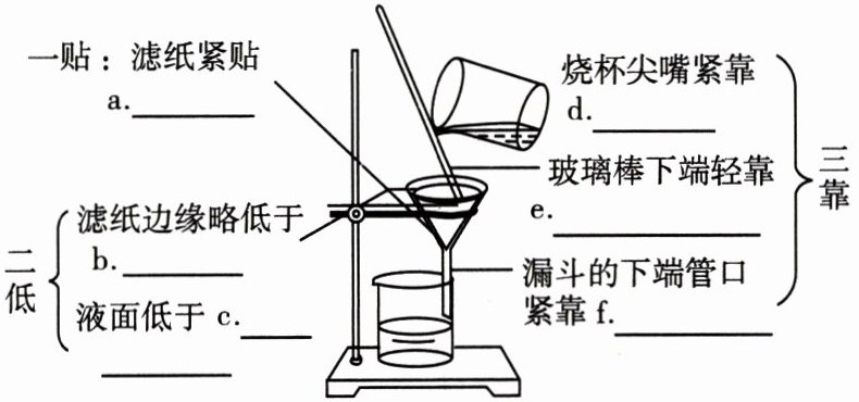 (2)不溶性 ①不溶性固体 液体 ②引流 ③a. 漏斗壁 b. 漏斗口 c. 滤纸的边缘 d. 玻璃棒 e. 三层滤纸一侧 f. 烧杯内壁