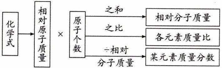 释疑解惑(1)常见题型与计算方法化学式$\xrightarrow{相对原子质量}×$原子个数$\begin{cases}$之和$\to$相对分子质量\\之比$\to$各元素质量比\\÷相对分子质量$\to$某元素质量分数$\end{cases} $