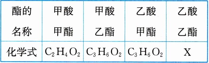 10. (主题教育·健康教育)大多数厨师有个工作经验:炒菜时,又加料酒又加醋,可使菜变香,原因是醋中的乙酸与料酒中的乙醇反应生成了乙酸乙酯。下表中是几种常见的酯,请回答下列问题: