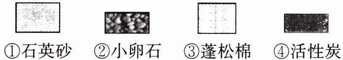 ①石英砂 ②小卵石 ③蓬松棉 ④活性炭