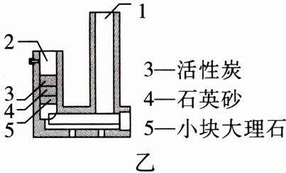 (填实验用品)作用相同。②(高阶思维)该净水器进水口为如图乙中“1”“2”中的