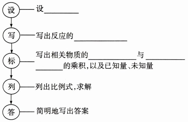 1. 未知量 2. 化学方程式 3. 相对分子质量 4. 比例式