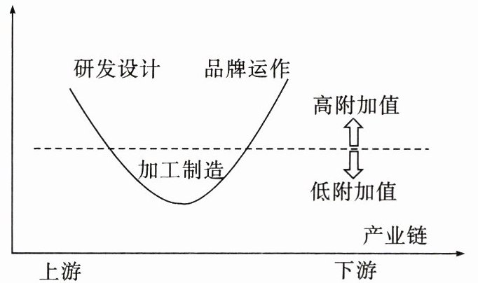 7. 产业微笑曲线(如下图)反映了在产业链中获利更多体现在两端,中间环节的获利最低。产业微笑曲线对我国发展的启示有( )