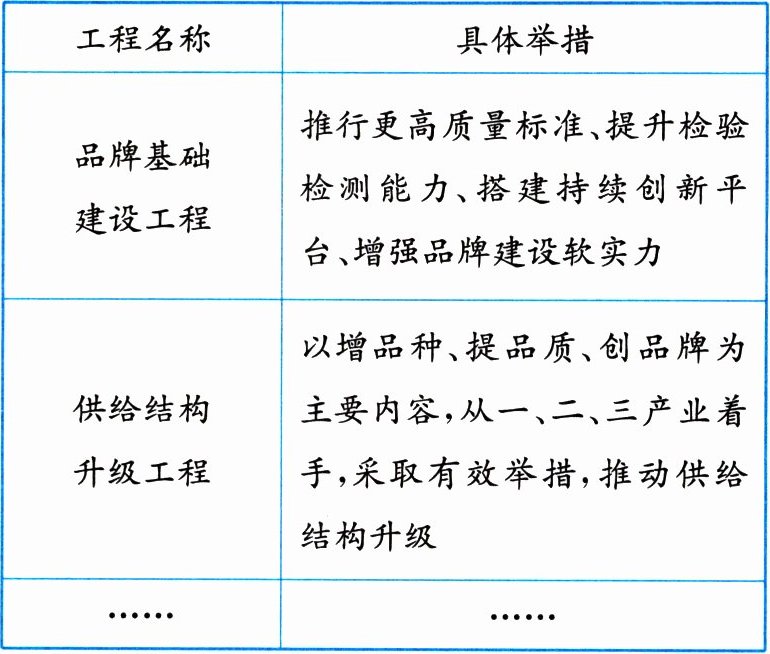 材料二 以下是国务院办公厅印发的《关于发挥品牌引领作用推动供需结构升级的意见》提出的重大工程。