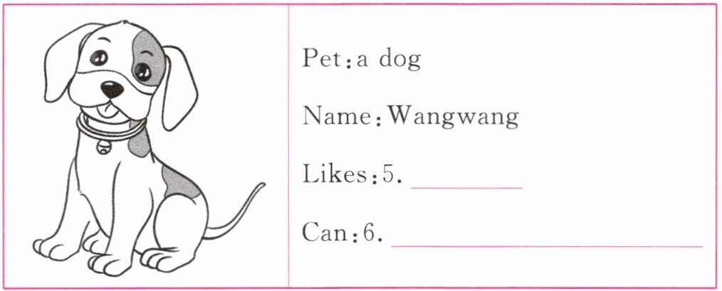 ||Pet:a dog Name:Wangwang Likes:5. ______ Can:6. ______|