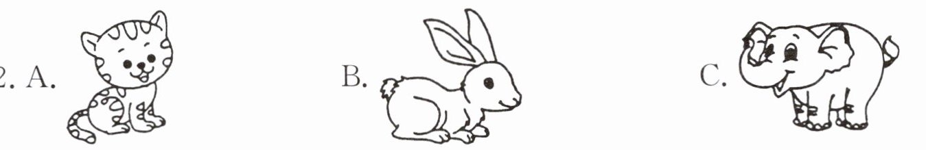 ( )4. A. bird B. elephant C. rabbit
