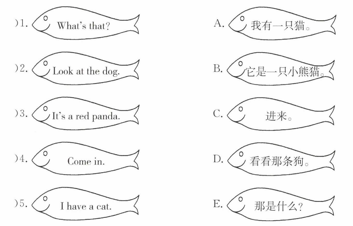 ( )4. Come in. D. 看看那条狗。