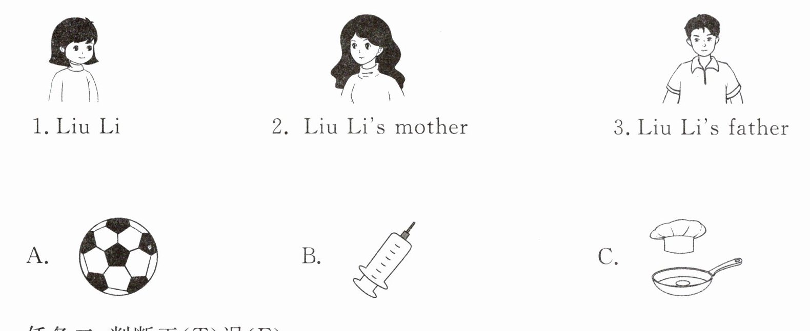 任务一:1.B 2.C 3.A;任务二:1.F 2.T 3.T 4.F 5.T