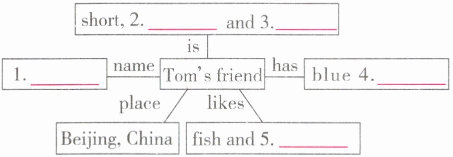 John's friend's name is ______. She is from ______, China. She has ______ ______. She is ______, ______ and ______. She likes ______ ______ ______.