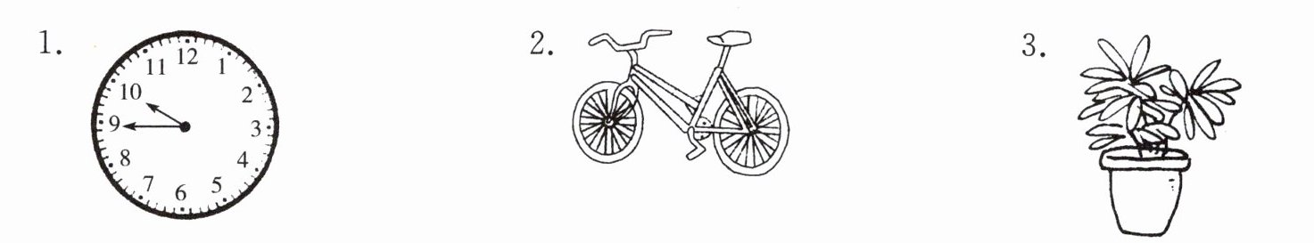 1.clock 2.bike 3.plant 4.picture/photo 5.bed 6.plate