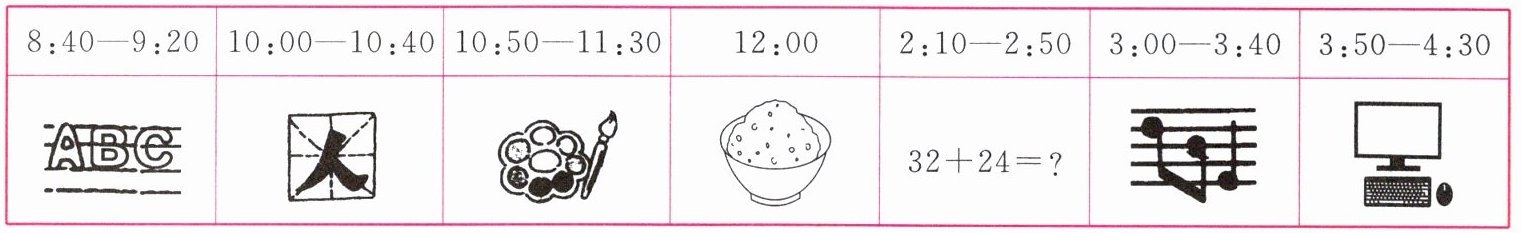 1. Fridays 2. classes 3. English 4. Chinese 5. art 6. lunch 7. maths 8. music 9. computer 10. play