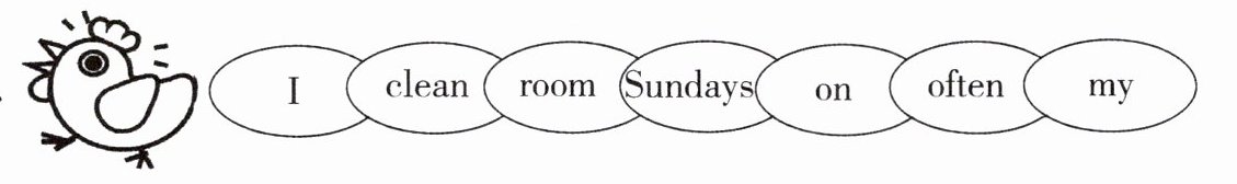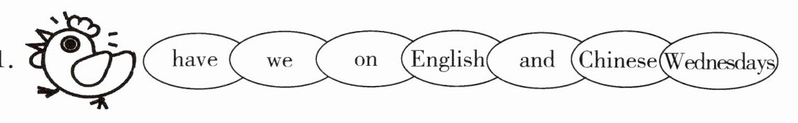 1. We have English and Chinese on Wednesdays. 2. I often clean my room on Sundays. 3. I'll put back the football. 4. What do you do on Saturdays? 5. It's a new school year.