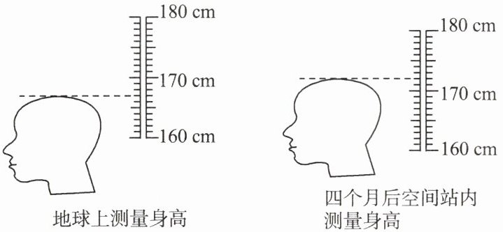 4. 某航天员进入空间站四个月后,她发现无法穿上从地面带去的宇航服,原因是她在失重环境下长高了,如图所示,这四个月她长高了(