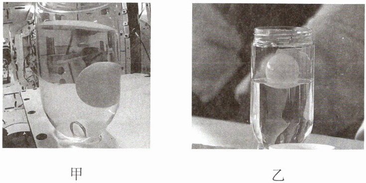 6. 2022 年 4 月 16 日,神舟十三号载人飞船返回舱成功着陆。图甲是航天员王亚平在空间站做的乒乓球浮力消失实验,图乙为某物理老师做的浮力实验。下列说法错误的是(