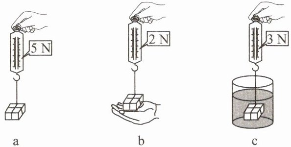 $ N $。(3) 将物体浸入水中,如图 c 所示。对照 c 与 a、b 实验,说明