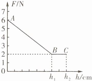 (选填“$AB$”或“$BC$”)段表明物体所受浮力的大小随其排开液体的体积的改变而改变。(3)圆柱体由 $h_{1}$ 到 $h_{2}$ 的过程中,其下表面所受水的压强增大,所受浮力
