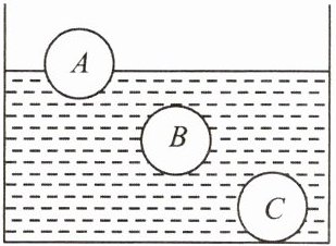2. 如图所示,体积相等的三个小球静止在水中,关于它们受到的浮力大小正确的是(