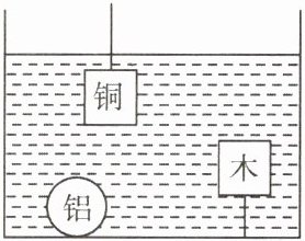 5. 体积相同的铝球、铜块和木块,浸在液体中的情况如图所示,则比较它们受到的浮力(