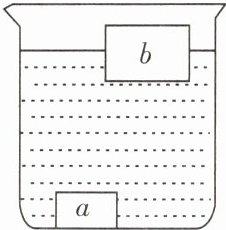 6. 小明看到清淤作业人员正在将水塘底部的淤泥搬运到船上,他想:水面高度会变化吗?于是进行了探究:首先,将石块 $ a $ 和不吸水的木块 $ b $ 置于装有水的烧杯中,如图所示;然后,将石块 $ a $ 从水中拿出并轻轻放在木块 $ b $ 上,它们处于漂浮状态,则水面高度将(