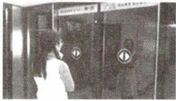 4. 晓娟周末去商场,站在门口能透过商场的玻璃门看到自己完整的像(如图所示),在电动玻璃门自动向两侧平移的过程中,晓娟在左右两侧玻璃门中(