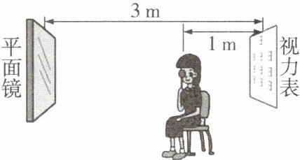2. (1) 检查视力的时候,视力表放在被测者头部的后上方,被测者识别对面墙上镜子里的像,如图所示,平面镜所成的像是