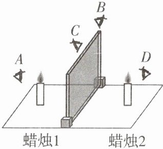 的蜡烛 2 放到玻璃板另一侧,边移动边观察。观察时,眼睛应该在图中A