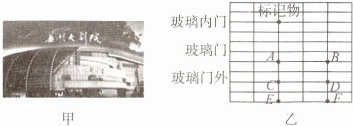 芜湖大剧院立意于开启的贝壳。小王同学发现大剧院的玻璃门(如图甲所示)可简单地验证平面镜成像的某些规律。