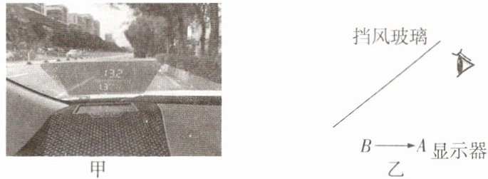 1. 为了避免驾驶员低头观看仪表信息而造成交通事故,车内安装了如图甲所示的抬头显示器(简称 HUD)。通过前挡风玻璃可呈现水平显示器上的重要行车数据,方便司机查看。请在图乙中画出显示器 AB 在挡风玻璃中所成的像。