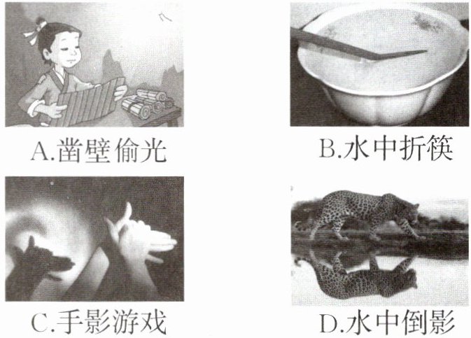 5. 下列光现象:①皮影戏;②海市蜃楼;③小孔成像;④池水变“浅”。