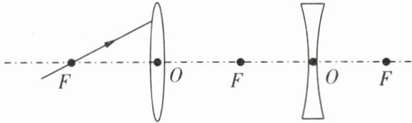 2. 如图所示,下列凸透镜与凹透镜的一个焦点重合,请根据入射光线,画出相应的出射光线。