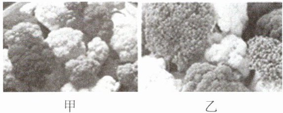 2. 小普同学用照相机拍摄下了同一盒新品种彩色花菜的甲、乙两张照片,如图所示。结合图片分析,下面说法不正确的是 (
