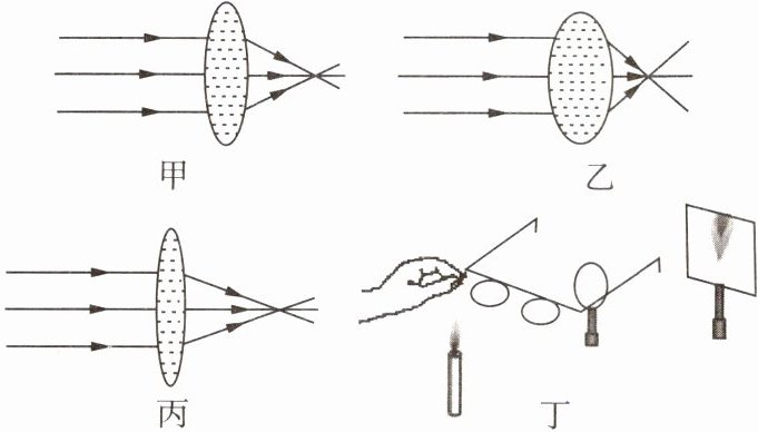 (4) 当将近视眼镜如图丁放置时,光屏上本来清晰的像变模糊了,要使光屏上的像变清晰,光屏应向