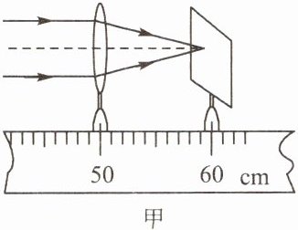 (1) 他让一束平行于凸透镜主光轴的光线通过凸透镜后在光屏上得到一个最小、最亮的光点,如图甲所示,则凸透镜的焦距为