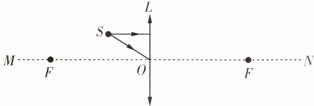 7. 如图,L表示凸透镜,MN为主光轴。O为光心,F为焦点。从S点发出两条光线,一条经过光心,另一条平行于主光轴,请在图中画出它们经凸透镜后的出射光线。