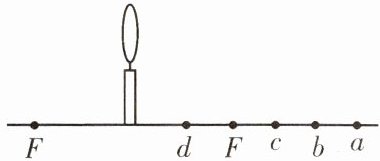 5. 如图所示,在观察凸透镜成像的实验中,若将蜡烛依次放在a、b、c、d四点,则在光屏上得到的像最大时,蜡烛一定是放在(